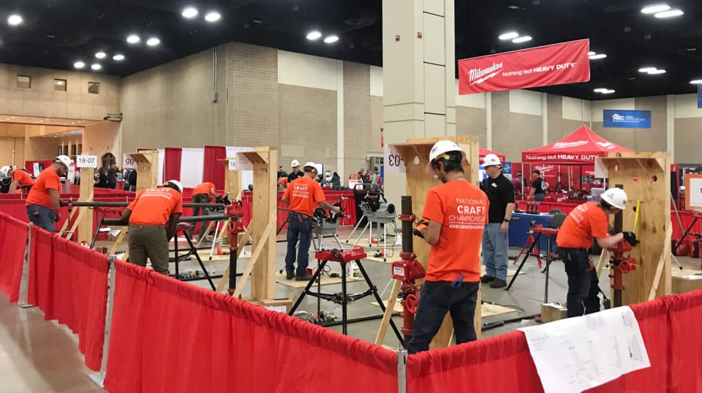 Congratulations to Derrick Brown of Sprinklermatic recognized among 3 winners for his superior skill, training and safe work practices at the 2022 #ABC National Convention #CraftChampionships in San Antonio, TX accompanied by his trainer and mentor Superintendent Asher Detwiler.