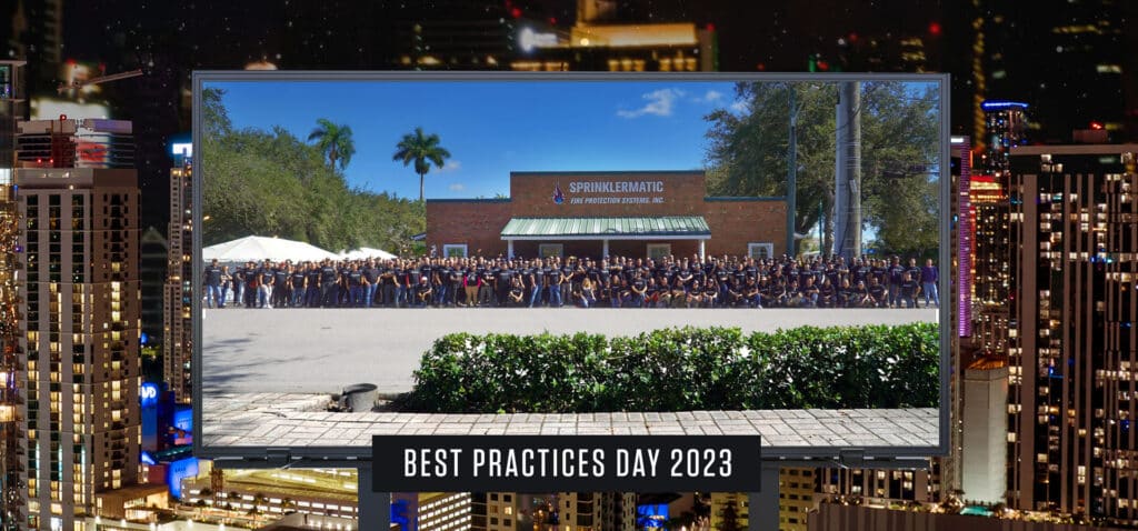 Best Practices Day is an annual Sprinklermatic event dedicated to safety, training, certification, teambuilding, leadership and peer recognition. The mandatory company-wide function occurs the week prior to Thanksgiving across five Sprinklermatic locations in Florida. All field and office teams are expected to attend and take part in important training, keynotes, awards and annual field certifications throughout the event.