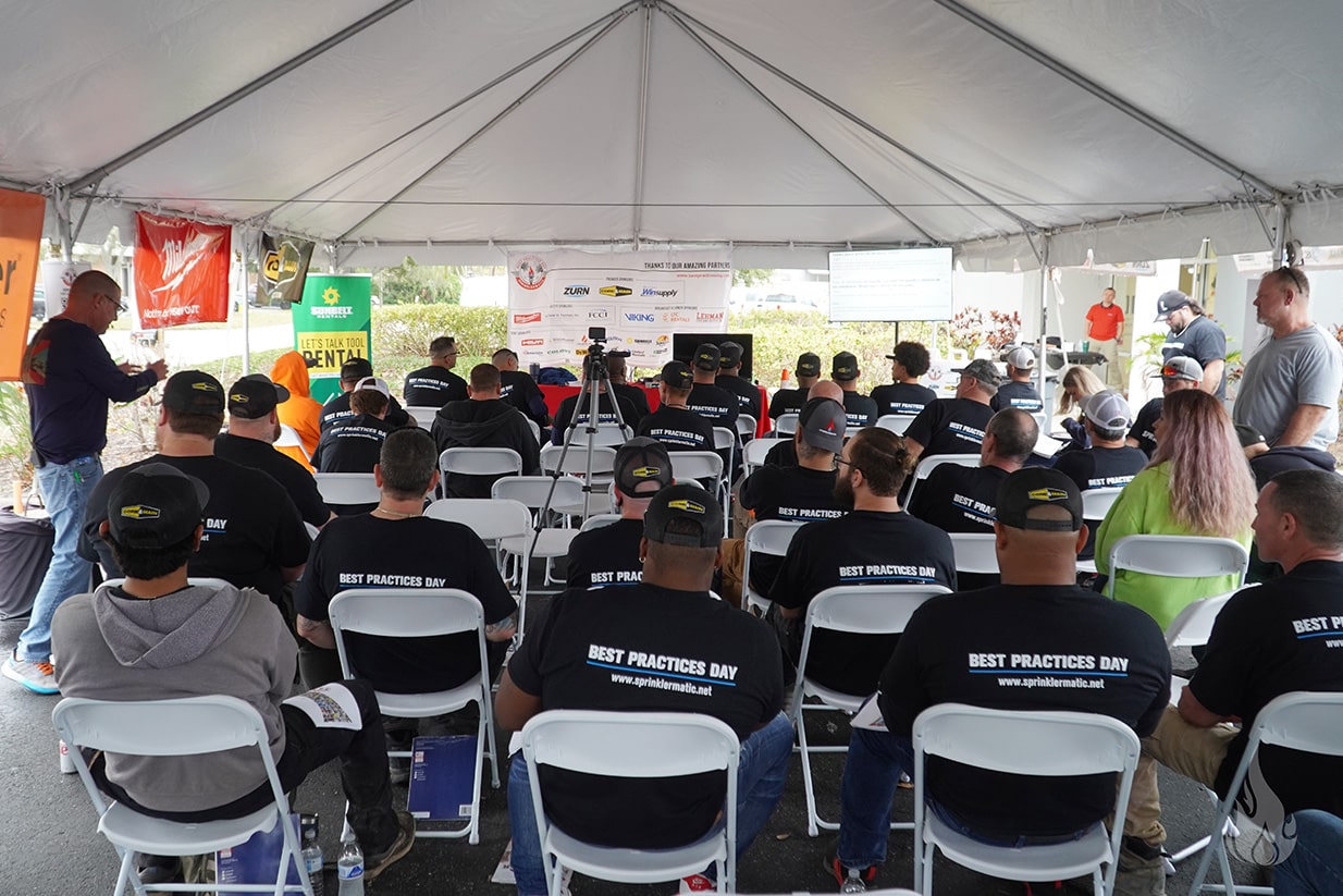 Best Practices Day is an annual Sprinklermatic event dedicated to safety, training, certification, teambuilding, leadership and peer recognition. The mandatory company-wide function occurs the week prior to Thanksgiving across five Sprinklermatic locations in Florida. All field and office teams are expected to attend and take part in important training, keynotes, awards and annual field certifications throughout the event.